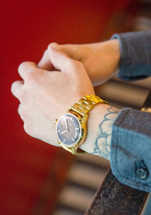 Movimiento automático japonés Miyota 8215 premium. Veintiuna joyas, tres agujas con función de fecha. Sistema de cuerda con volante de tungsteno unidireccional y reserva de marcha de 40 horas.
