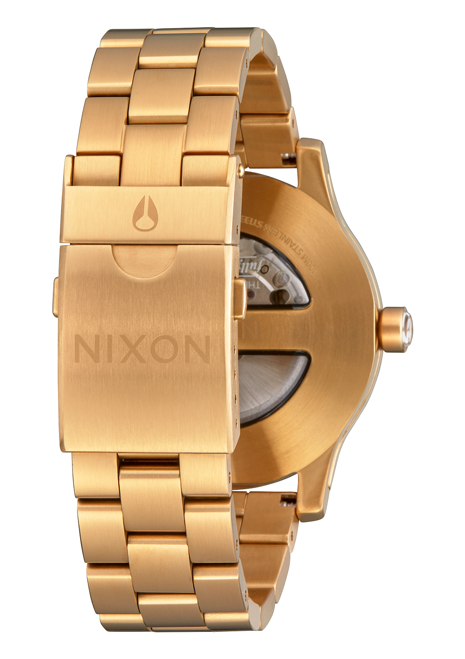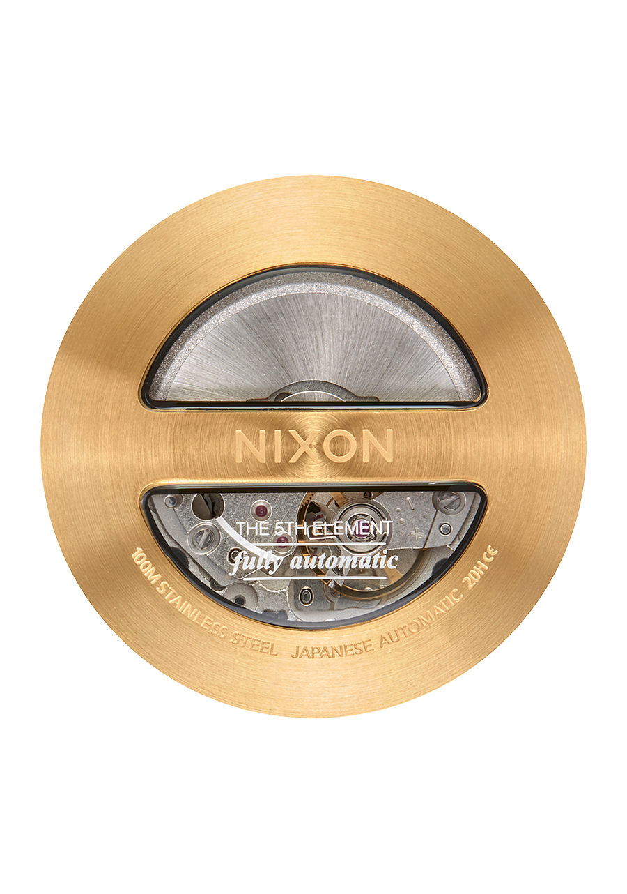 El diseño único de dos piezas elimina la necesidad de una tapa trasera tradicional, mientras que la ventana dividida ofrece una vista del funcionamiento interno del movimiento automático y la forma personalizada del cristal se integra perfectamente en la caja con bordes angulados. La esfera abovedada presenta índices de bloque LUME y acentos LUME en las manecillas para una visibilidad incluso en condiciones de poca luz.