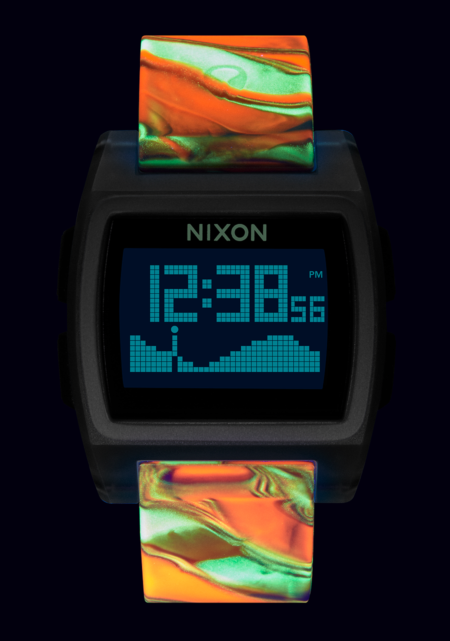 Módulo digital personalizado con marea básica. Las funciones incluyen hora del día (12 o 24 horas), calendario hasta 2099, marea básica, marea futura, retroiluminación EL, cronógrafo y temporizador de cuenta regresiva personalizable. La pantalla principal puede configurarse para mostrar la hora y la fecha o la hora y la marea.