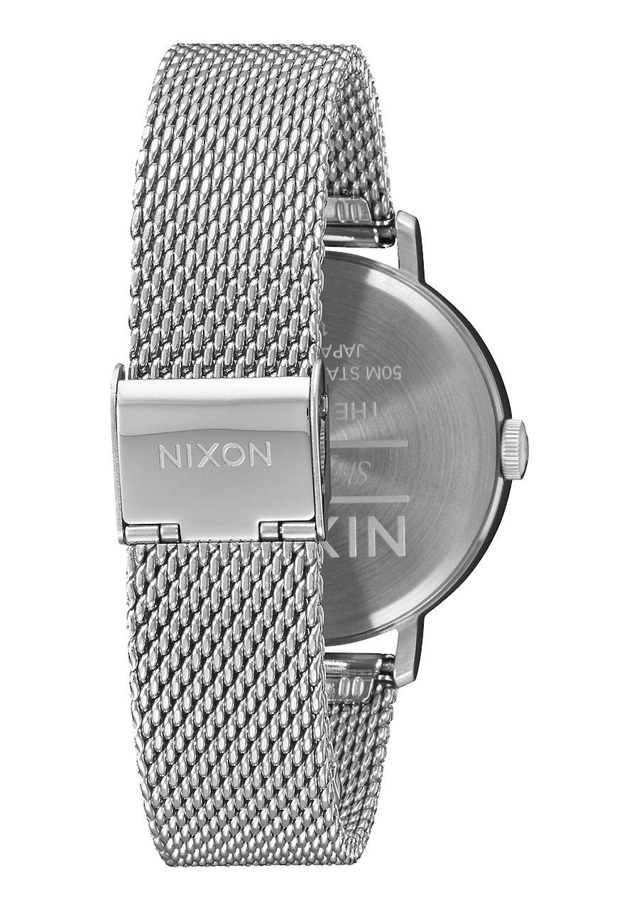 Presenta un subesfera de fecha única a las 12 en punto con el subesfera del día de la semana a las 4 en punto, así como una elegante correa milanesa.