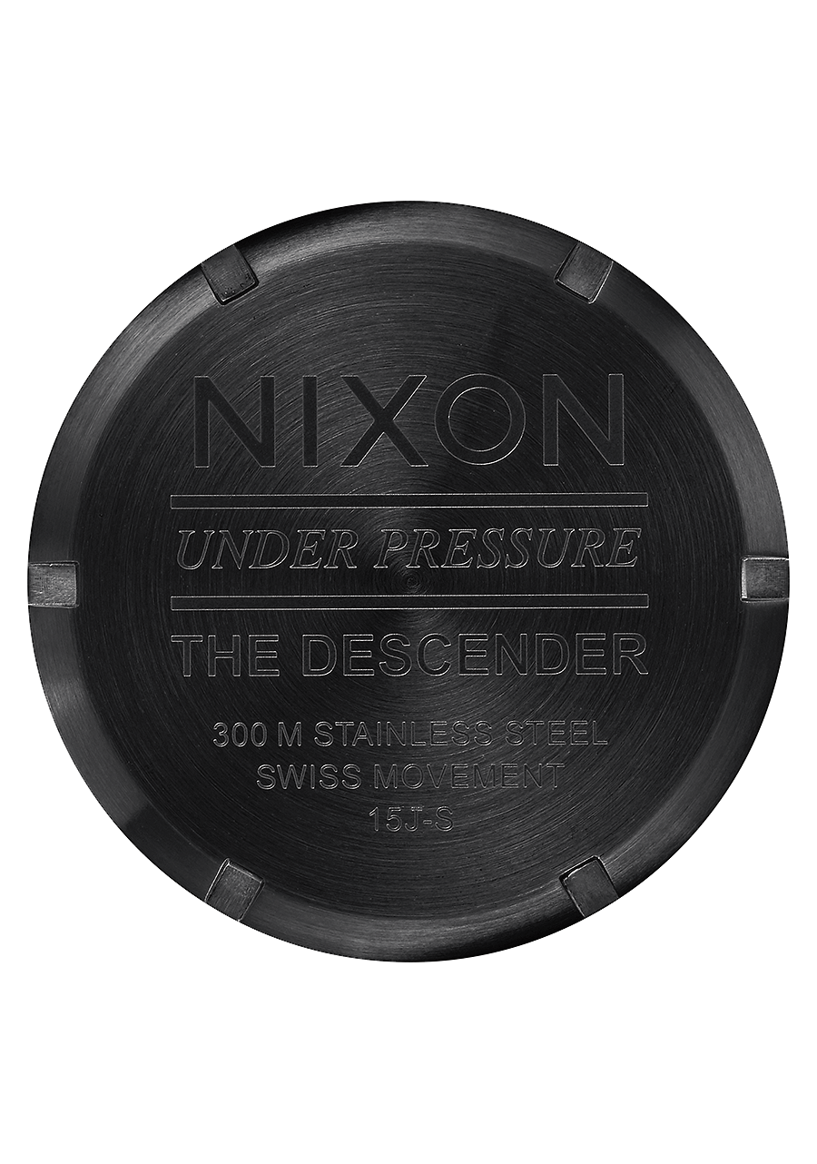 La corona estriada con forma de diente de tiburón está enmarcada con el protector de corona incorporado. La corona está situada a las 9 en punto para evitar el "mordisco de muñeca" durante las actividades. También cuenta con un bisel giratorio unidireccional para un temporizador de cuenta regresiva analógico.