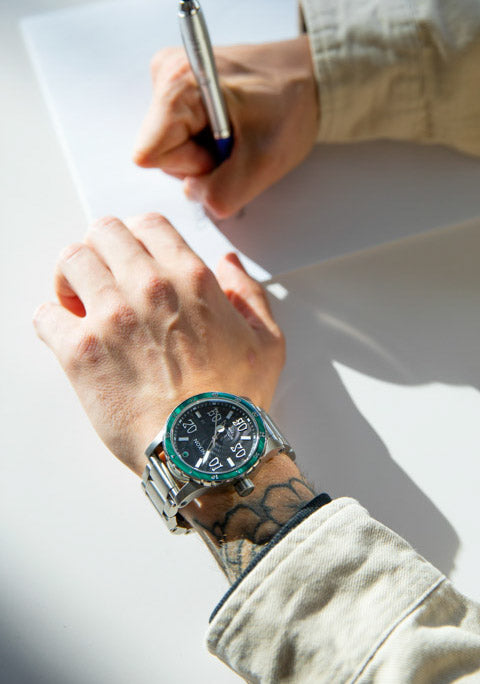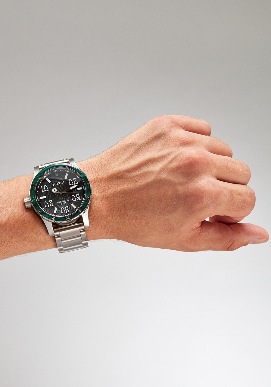 Movimiento automático japonés Miyota 8215, segundero barrido y rotor del movimiento grabado a medida que destacan algunos de los detalles más finos del Diplomatic. También incluyen números e índices aplicados en la esfera y el anillo con una escala de segundos impresa en el bisel giratorio unidireccional. Precisión de nivel profesional con una resistencia al agua de 200 m / 20 ATM que lo demuestra.