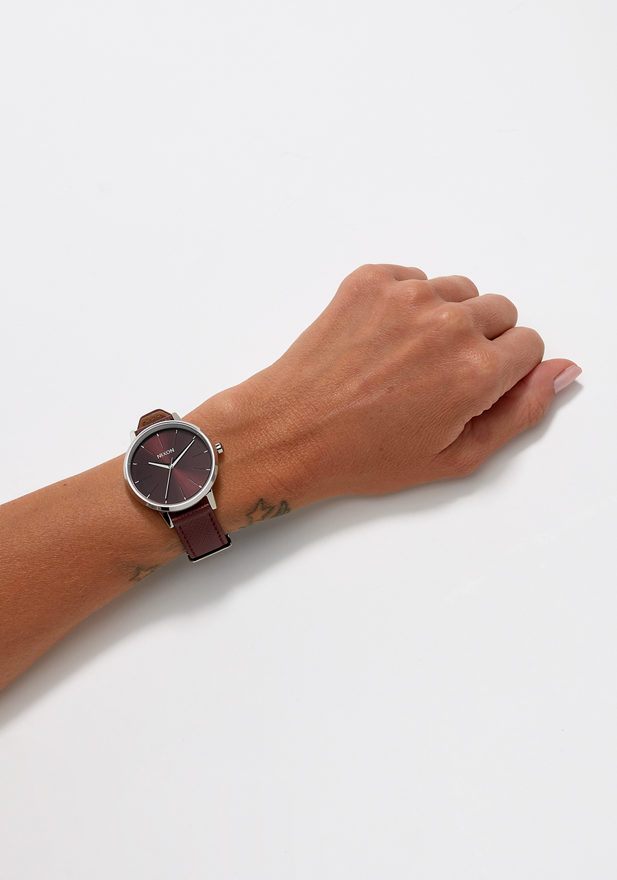 La esfera presenta índices de bastón grabados e impresos y agujas moldeadas a medida.