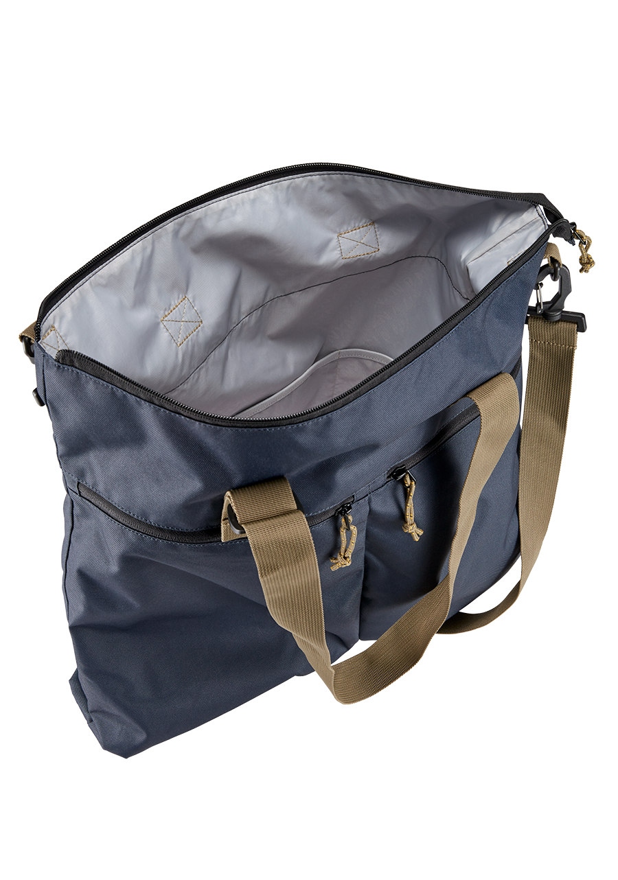 Exterior en poliéster 600D fabricado con plásticos reciclados REPREVE® Our Ocean™ procedentes de los océanos. Interior de poliéster 200D elaborado con PET reciclado