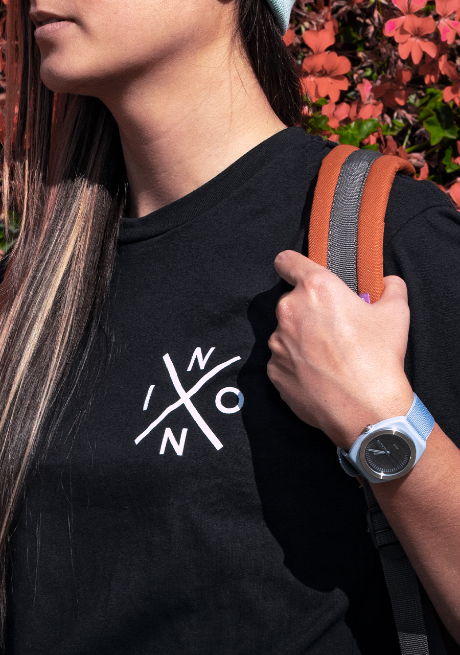 La esfera incluye índices aplicados en forma de barra y el logotipo de la marca Nixon. Viene con manecillas de hora y minuto en forma de alambre. La manecilla de segundos se extiende a lo largo de la esfera del reloj.