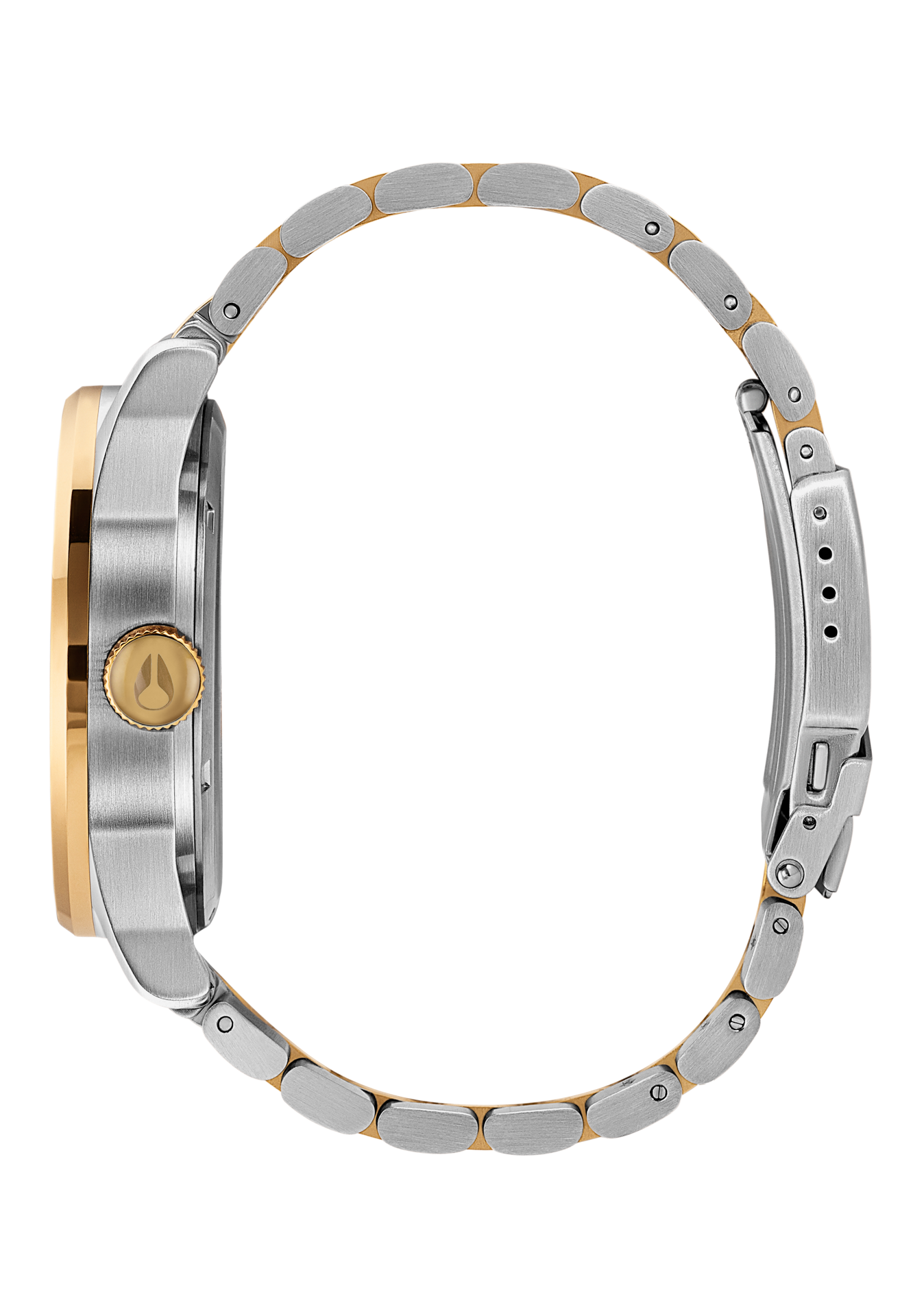 42 mm, 10 ATM / 100 m, caja personalizada de acero inoxidable macizo, cristal mineral endurecido, corona con triple junta y relleno de esmalte, fondo de caja atornillado de acero inoxidable y asas con pasadores de resorte.
