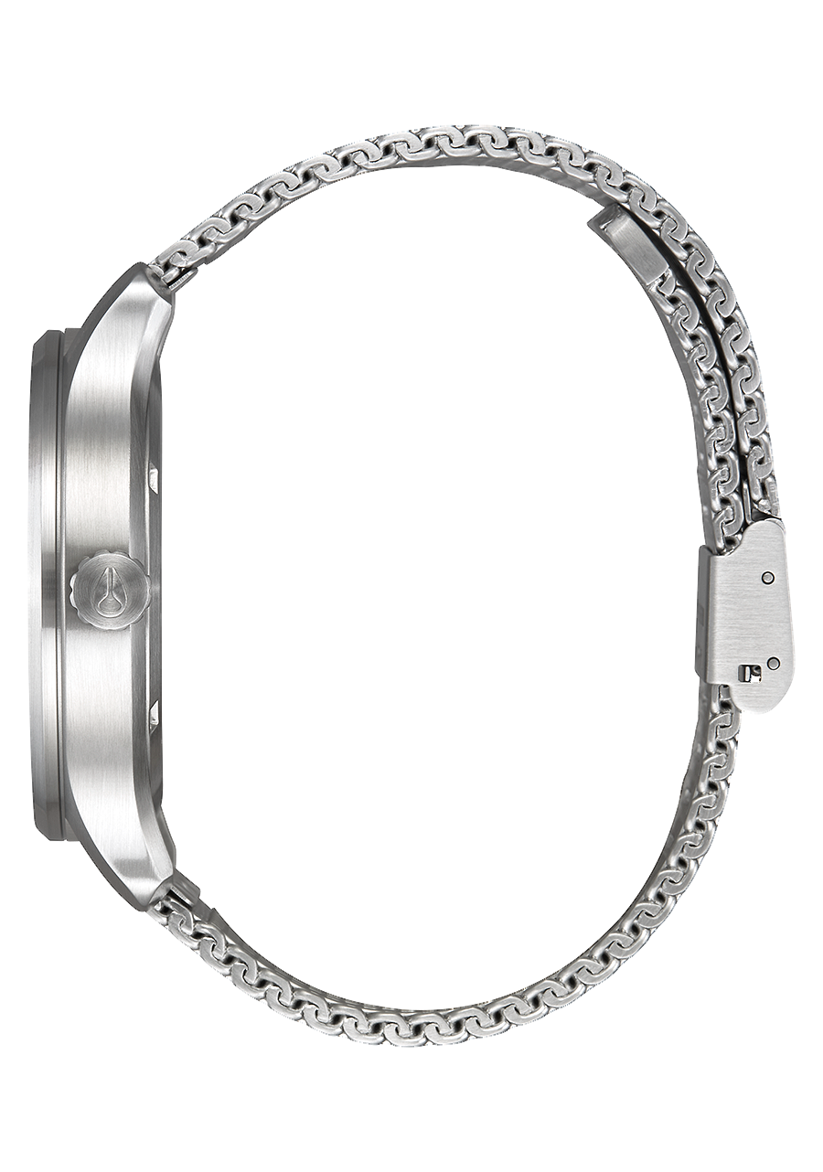 Caja personalizada de acero inoxidable macizo de 42 mm con resistencia al agua de 100 metros / 10 ATM. Viene con un cristal mineral endurecido, fondo de caja atornillado de acero inoxidable y asas con pasadores de resorte.