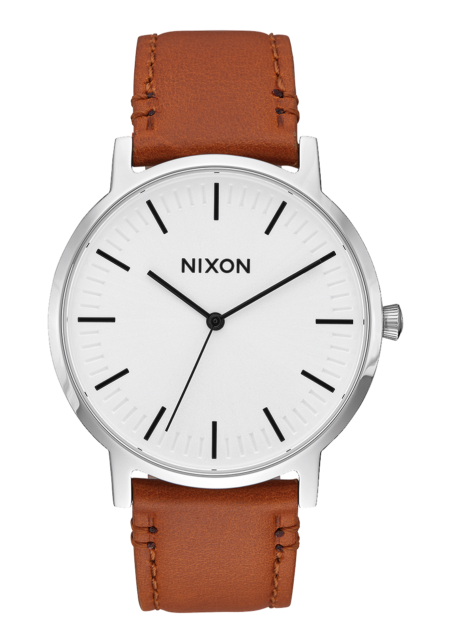 La esfera presenta índices horarios de bastón impresos en negrita y una pista de segundos estampada.