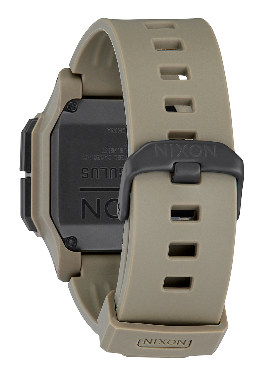 El Nixon Regulus es un reloj altamente duradero con resistencia tanto al agua como a los golpes. Usamos espuma Poron entre el cerebro del reloj y la caja, que actúa como una carcasa que bloquea golpes. El reloj está protegido por una funda de PU y cuenta con acolchado de espuma Poron para mayor absorción de golpes y durabilidad. El Regulus también cuenta con una resistente correa de goma moldeada y una hebilla de acero inoxidable, que aumentan su robustez y durabilidad.