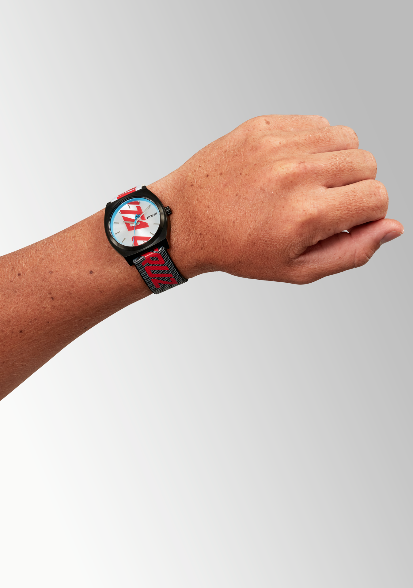 Correa de reloj de poliéster de 20 mm con logo Santa Cruz atravesado, cierre rápido y hebilla de acero inoxidable.
