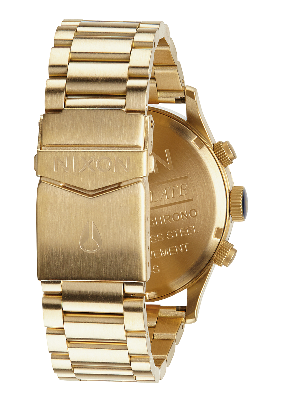 La caja de 42 mm de acero inoxidable macizo con diseño especial presenta un cristal mineral endurecido, corona de triple junta con relleno de esmalte y dorso atornillado de acero inoxidable, sumergible hasta 10 ATM/100 m. El cierre a presión doble microajustable lleva al siguiente nivel la seguridad compleja de la correa de acero inoxidable macizo de 3 eslabones.