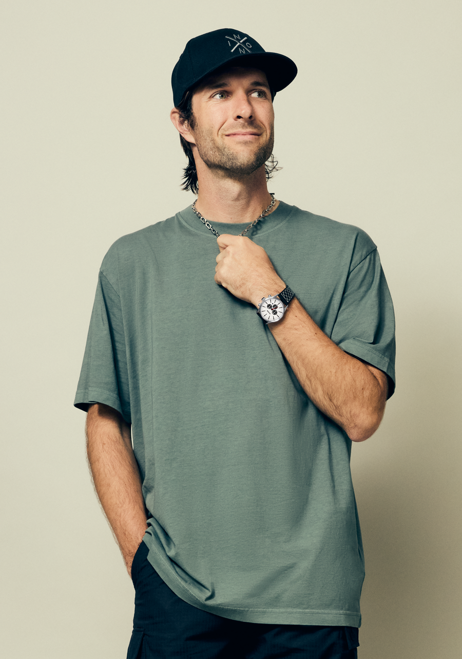 Cronógrafo de seis agujas con subesfera de 24 horas y fecha situada a las 4 en punto.