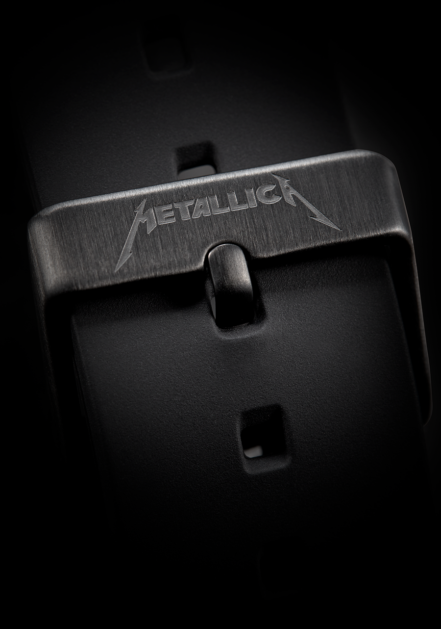 La esfera presenta índices de barra elevados y manecillas moldeadas a medida.