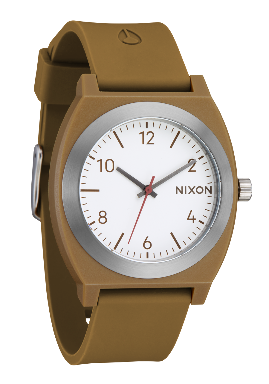 El Time Teller OPP está hecho de Plástico de Otras Personas (OPP), que se refiere a materiales plásticos reciclados, específicamente plástico post-consumo que de otro modo terminaría como desecho. Este enfoque permite a Nixon reducir residuos y promover la sostenibilidad, alineándose con un objetivo de crear artículos ecológicos como el reloj Time Teller OPP.