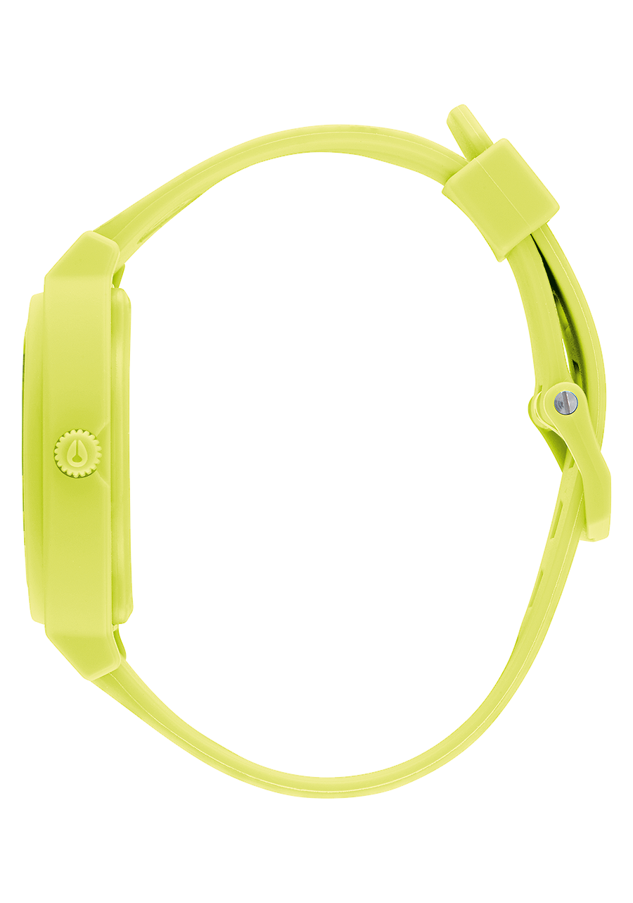 Caja central personalizada de acero inoxidable de 40 mm con resistencia al agua de 100 metros / 10 ATM. La caja del reloj está recubierta con policarbonato moldeado por inyección personalizado, bisel fijo de policarbonato, cristal mineral endurecido, corona de policarbonato moldeada con triple junta, fondo de caja de acero inoxidable atornillado recubierto con policarbonato moldeado por inyección personalizado y asas con pasadores de resorte de acero inoxidable.