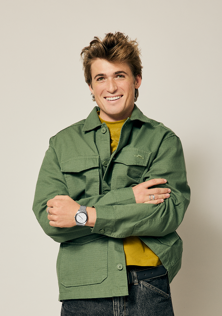 La esfera presenta índices de bastón en relieve y manecillas moldeadas personalizadas.