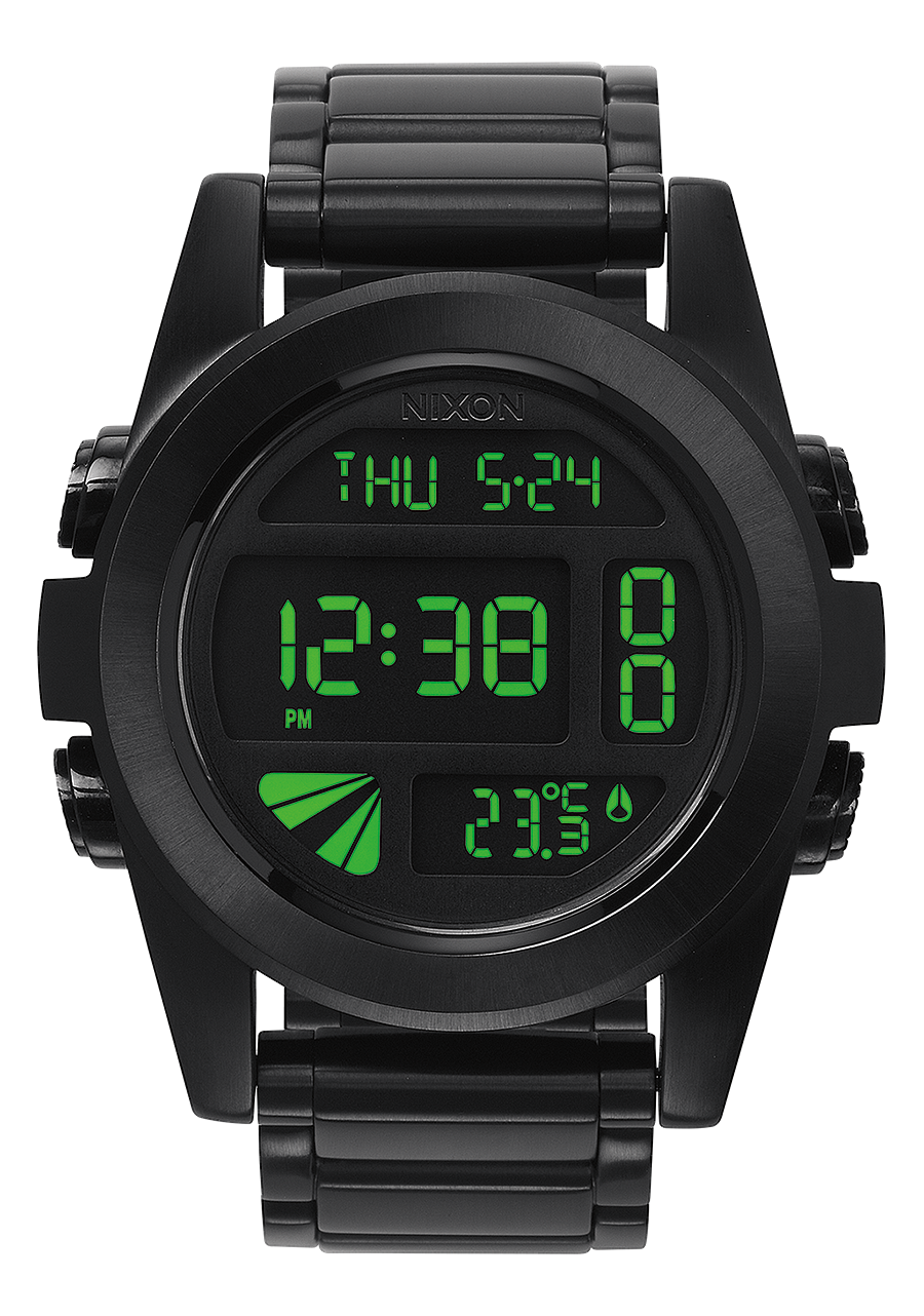 Movimiento digital personalizado con pantalla negativa, hora en formato 12 o 24 horas, calendario, indicador de temperatura, doble zona horaria, temporizador regresivo, cronógrafo, alarma y funciones de luz.