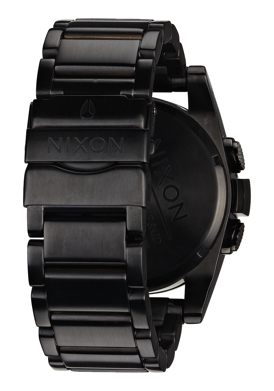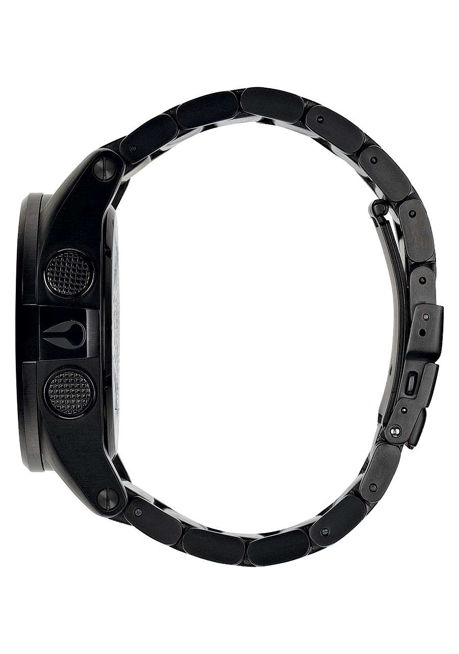 44,5 mm, caja personalizada de acero inoxidable macizo, 100 metros/10 ATM, bisel fijo de acero inoxidable macizo, cristal mineral endurecido, pulsadores de acero inoxidable con doble junta, fondo de caja atornillado de acero inoxidable y asas con pasadores atornillados.